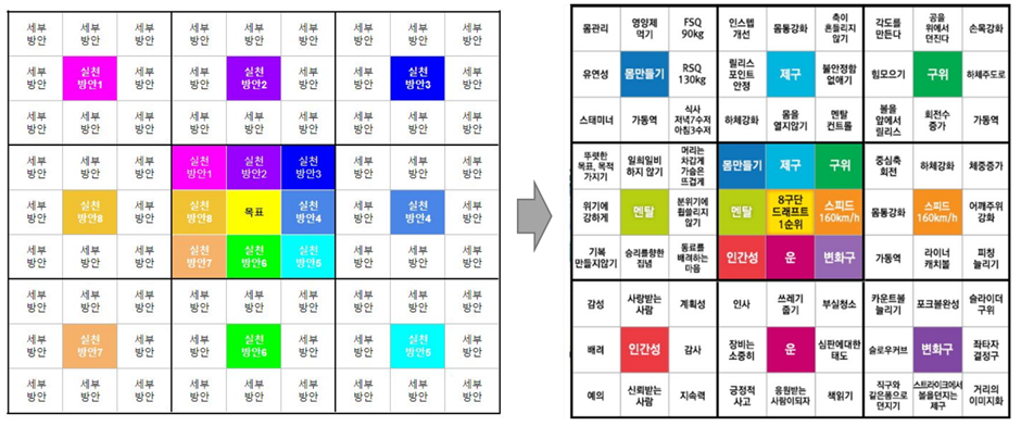 1) 만다라트(Mandal-Art): 목표(Manda)를 달성(la)하는 기술(art)