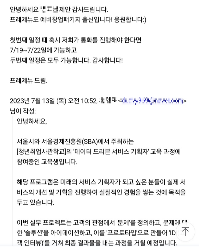 | #15 역기획 실무프로젝트 Day3 // 1차 인터뷰를 위한 메일컨택 (0) | 2023.07.16 |