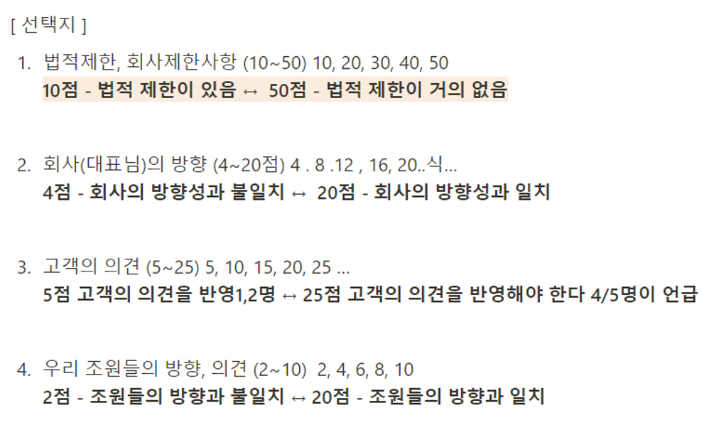 4. 포스트잇별로 점수를 매겨, 평균을 낸다.