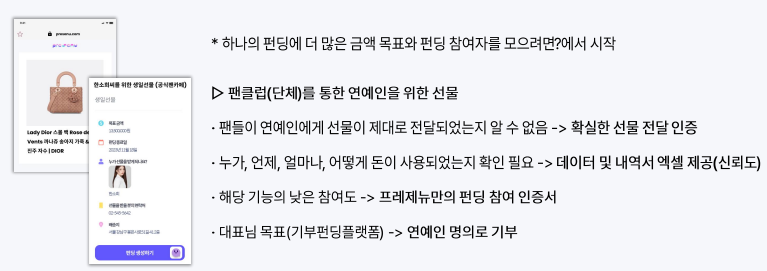 추가로 1차 실무진 인터뷰에서 대표님이 나중에 프레제뉴를 기부플랫폼으로 발전시키고 싶은 계획이 있다고 하셨다.