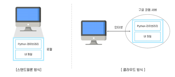 : 클라우드(Cloud) 방식 : 따로 프로그램 설치 없이 서버에서 실행되며, 파일은 클라우드 서버에 저장