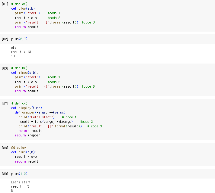 - 함수에서 코드를 바꾸지 않고 기능을 추가하거나 수정하고 싶을때 사용하는 문법