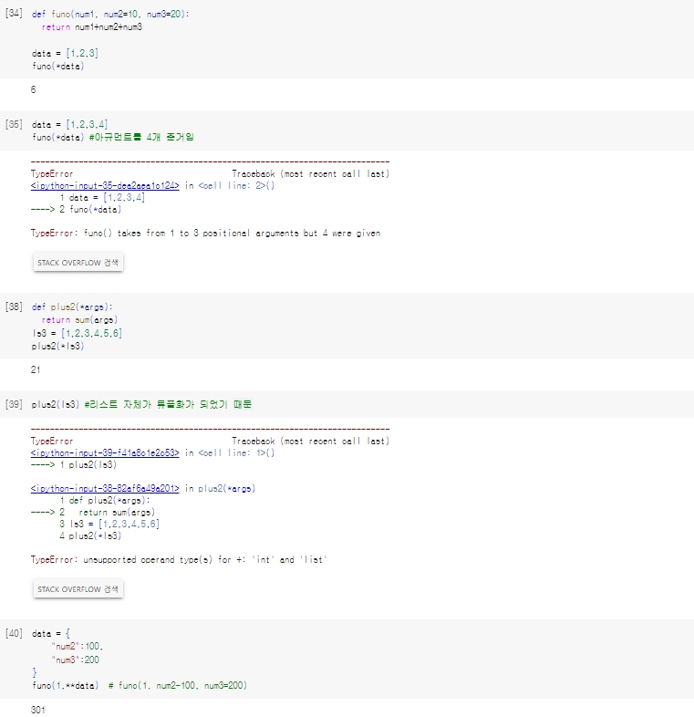 - 함수를 호출할때 아규먼트와 키워드 아규먼트의 갯수를 특정지을수 없을때 사용