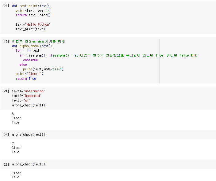 - 함수 내에서 연산 진행 중에 return에 도달 하면 연산이 종료