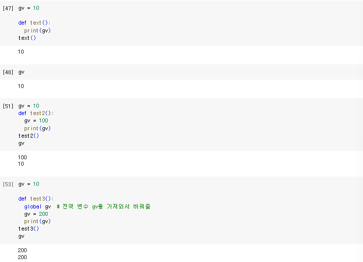 - 함수 안에서 선언되는 변수와 함수 밖에서 선언되는 변수의 범위