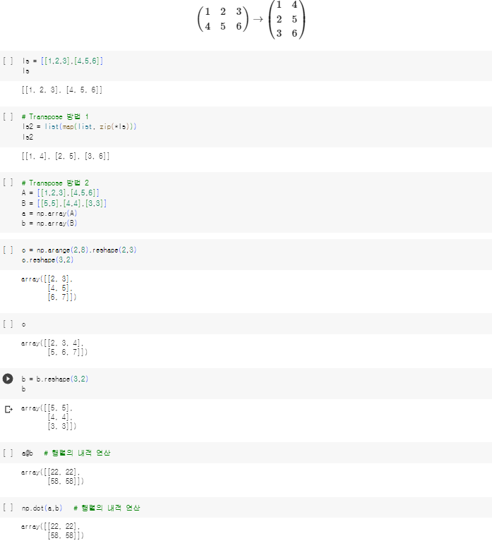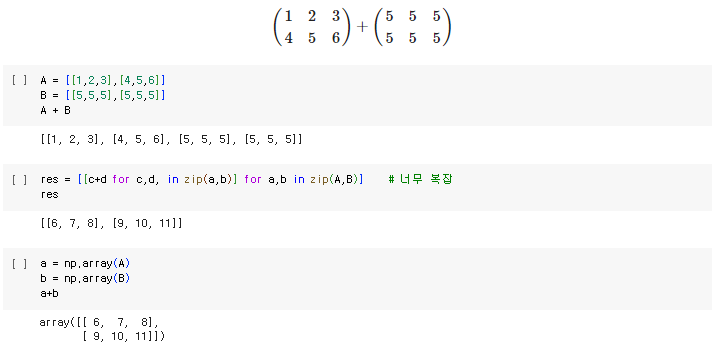 - 행렬 데이터 생성, 수정, 계산 등을 빠르게 처리해주는 패키지