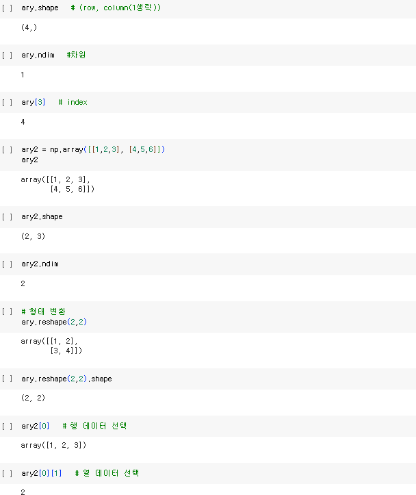 - 데이터 분석에서는 pandas가 많이 활용 되지만, 알고리즘 활용에 있어서는 numpy 패키지는 필수