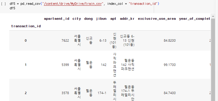 - csv 파일을 DataFrame으로 생성하기 위해서는 column명과 index가 존재하면 좋음