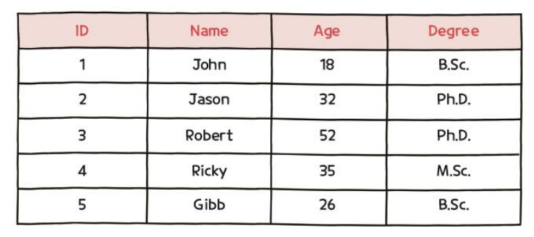 - ex) 스프레드시트, 관계형 데이터베이스, CSV