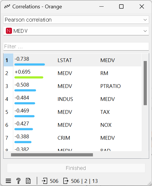 · 위젯: Unrelated > Correlations