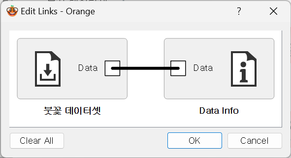 2. 링크를 더블클릭하면 왼쪽은 입력, 오른쪽은 출력 설정 (Data → Data)