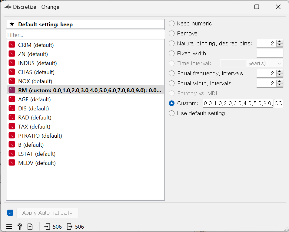RM 항목을 변환할 것이다. → Discretize