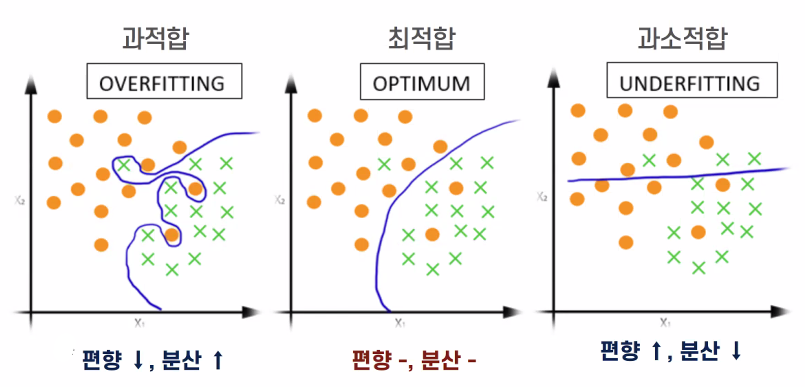 과적합도 안되고, 과소적합도 안되고, 최적합을 찾아야 한다.