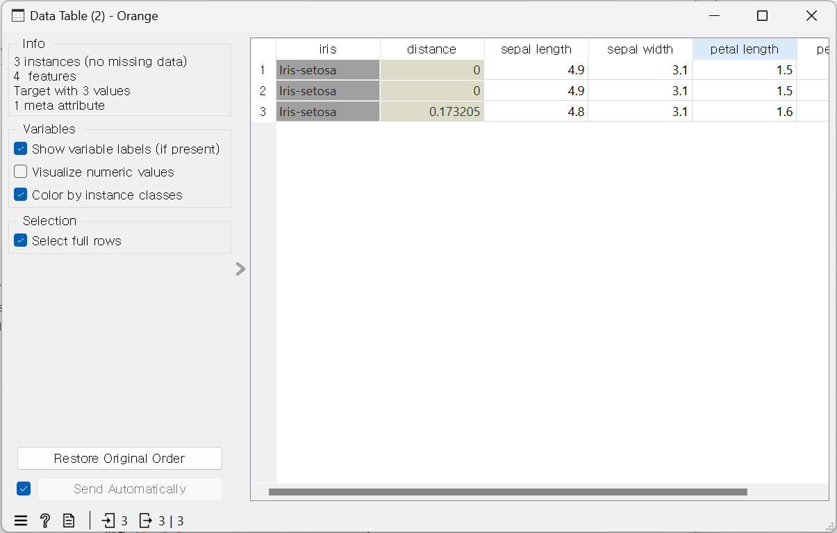 : 학습데이터세트에 포함된 데이터 간의 거리 관계를 이용해서 데이터를 분류하는 방법
