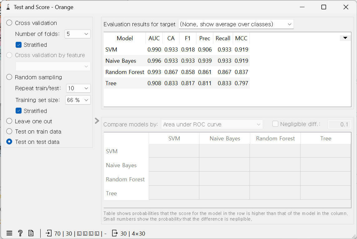 정확도(AUC)가 1이라는 것은 좋은 것이 아니다. 과적합이나 데이터가 너무 적다거나 한다는 의미.