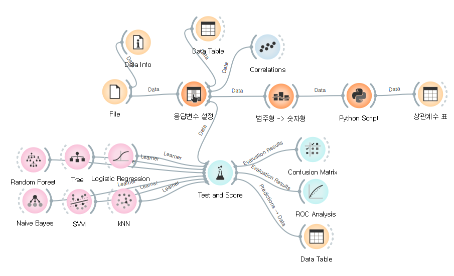 데이터 선정 → orange3 사용하여 데이터 분석 → 데이터 분석 보고서 작성 → 발표