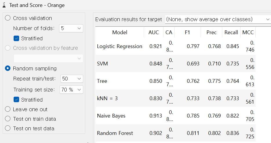 최종적으로, Logisistic Regression과 Random Forrest, 두 가지를 사용하기로 했다.