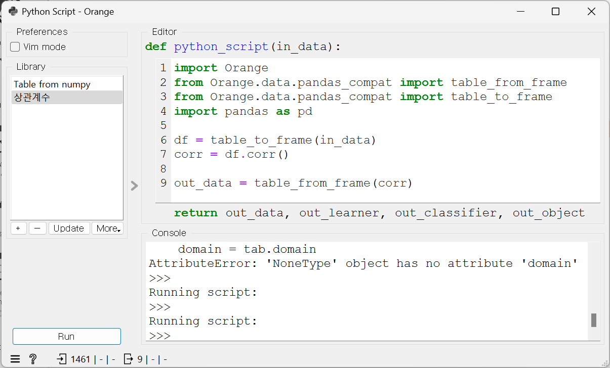 | 데이터 분석 워크숍(orange3 활용)#1 // 기술 통계, 정규화, 범주화, 숫자형 및 범주형 변환 (0) | 2023.09.09 |