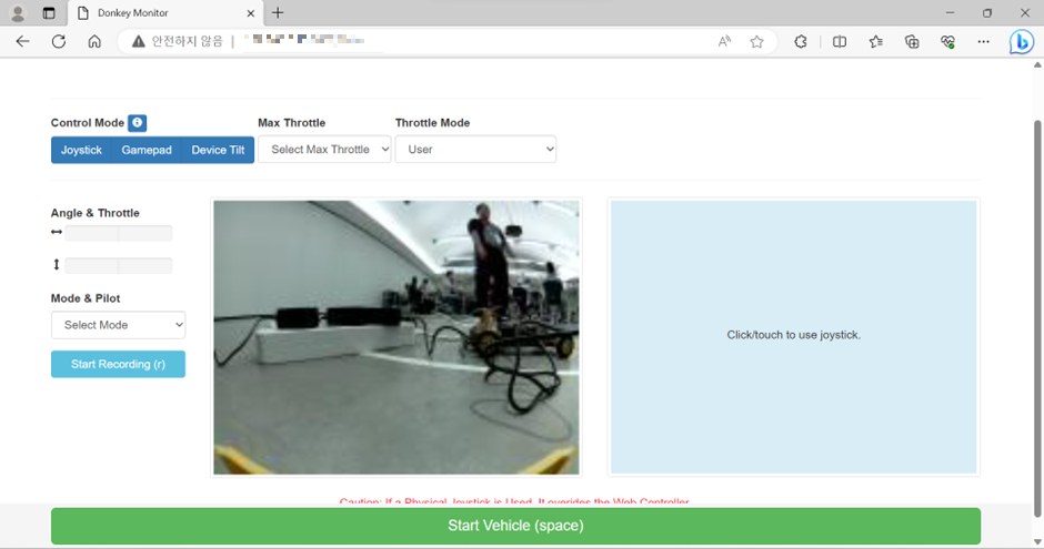 ④ 192.168.0.XXX:8887 웹브라우저 접속 → 좌측 하단에 select Mode Local Pilot 선택하면 바로 주행