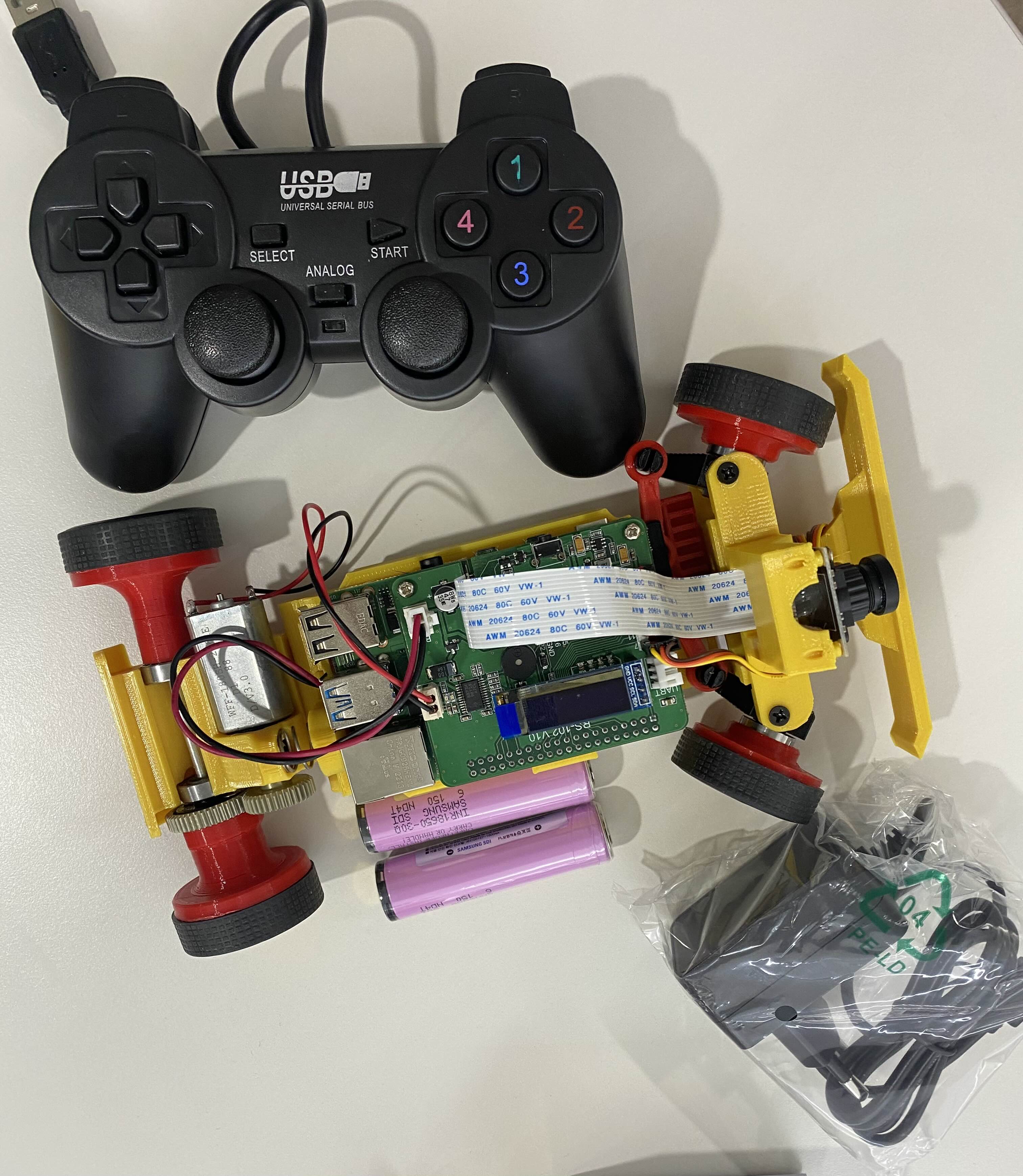 : RC카 기반의 본체에 라즈베리파이 보드를 통해서 카메라 기반의 이미지를 인식하여 조향장치를 조정하여 자율 주행이 가능