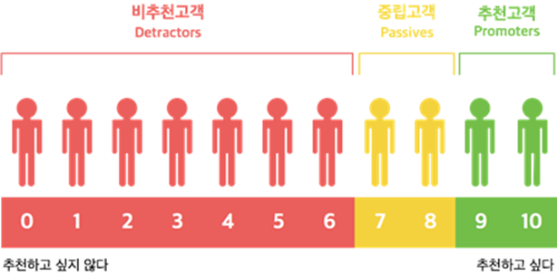 - 추천(9~10)고객 비율 / 비추천(0~6) 고객 비율