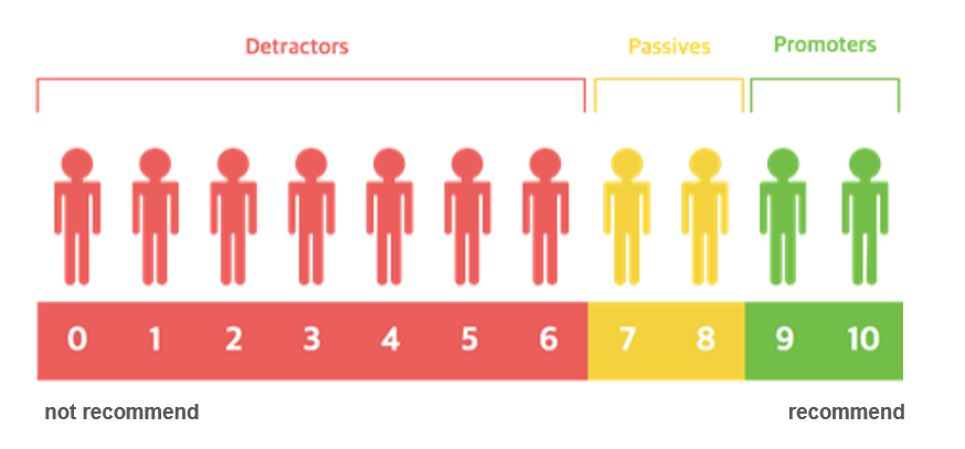 - Ratio of recommended (9-10) customers / Ratio of non-recommended (0-6) customers
