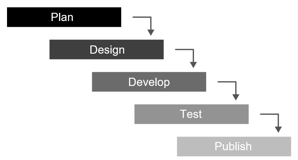 A one-way project development methodology that requires the first stage to be organized like a waterfall to move on to the next stage