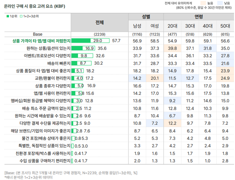 5. 온라인에서 구매할 때 여성분들이 상대적으로 남성분들보다 더 중요하게 여기는 특성은?